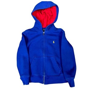 Sudadera con capucha azul y roja con cremallera completa Preppy Polo Ralph Lauren para niños - talla 5