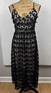 Vestido midi de terciopelo negro Burnout para mujer con volantes en capas oscuro hada caprichoso 8