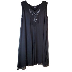 Nuevo Vestido Elie McCarthy Mujer Mediano Negro Plateado Sin Mangas Midi Largo Abertura Lateral