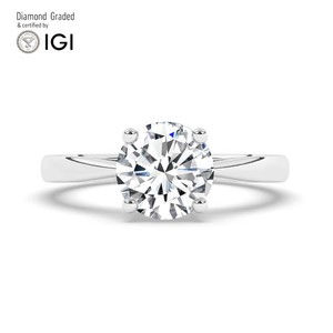 Anillo de compromiso solitario redondo de diamantes cultivados en laboratorio de oro blanco de 18 k de 3 quilates