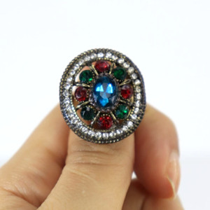 Hermoso anillo de metal vintage con estrás para cóctel elegancia para mujer
