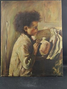 DIPINTO OLIO SU TELA DEL 1957 RITRATTO FANCIULLO FIRMATO RIVA