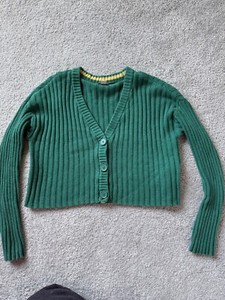 Suéter American Eagle Recortado Cuadrado con Botones Hombro Caído Cuello en V Verde Pequeño 10,36 EUR