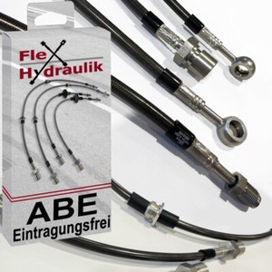 Eintragungsfreie Bremsschläuche aus Stahlflex, sofort einsetzbar.