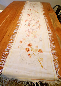 Linge ancien Chemin de table en coton brodé avec franges ( ref 45 )