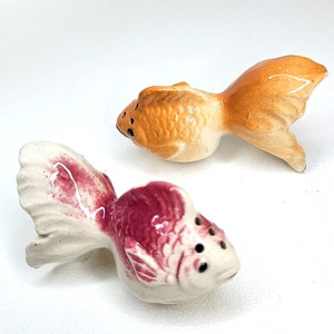 Juego mini coctelera de sal y pimienta vintage Ryukin Goldfish Japón años 50 naranja y rosa