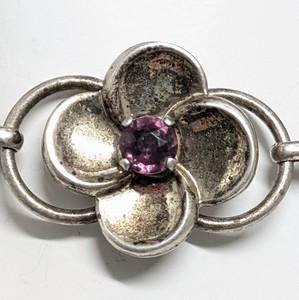 Brazalete Vintage Plata Esterlina Panel Flor 7" Vidrio Amatista 18.08g Sin Marcar