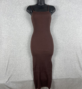 Vestido ajustado midi acanalado marrón chocolate Meshki para mujer talla M minimalista elegante