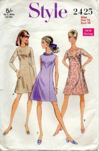 Vestidos estilo costura patrón 2425 vintage años 60 paneles de 1969 talla 14