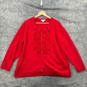 CJ Banks Cárdigan Suéter Mujer Plus 2X Rojo Volantes Cuentas Navidad Vacaciones