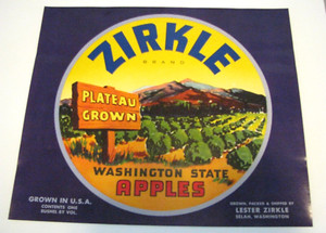 Etiqueta original de caja de manzana ZIRKLE Selah, Washington Lester Zirkle Plateau Grown