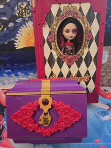 Muñeca Ever After High Lizzie Hearts (atada de fábrica) + cofre secreto encuadernador -