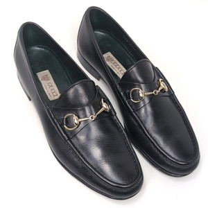 Vintage Gucci Horsebit Loafers Black Leather Gold 1953 Women’s 44.5 / US 10.5