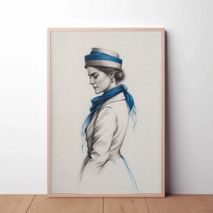 Un delicado dibujo a lápiz de grafito - póster de pared mate de moda vintage para dama