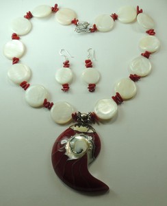 Conjunto de collar y pendientes de cadena con astillas y astillas de coral rojo natural declaración boda 126,04 EUR