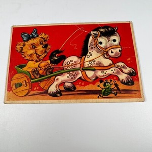 Postal Novedad Ojos Bamboleantes Caballo Cómic Niño por Rudolf Olsen Dinamarca PU 1953