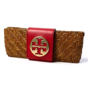 Cartera sin asas tejida de ratán Tory Burch cuero dorado logotipo TB boho chic