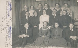 Tarjeta de gabinete foto antigua gran familia mujeres hombres niño Moorhead MN telón de fondo plano