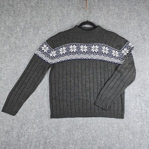 Suéter Mondala Grande Gris Blanco Azul Nórdico Isla Justa Tejido Pullover Hecho en EE. UU.
