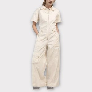 Mono cargo de pierna ancha de algodón tostado para mujer ZARA - Talla: XS