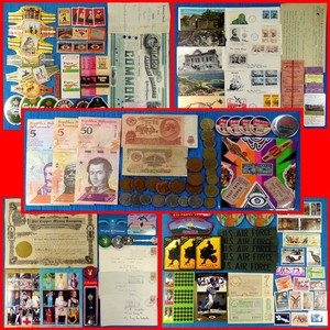 VENTA AL POR MAYOR EN TODO EL MUNDO: Lote mixto, sellos etiquetas tarjetas billetes monedas tapas boletos arte
