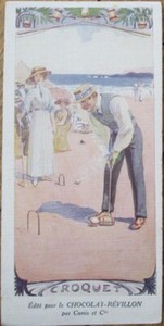 Chocolate Chocolat Révillon 1900 French Trade Card Croquet on Beach Art Nouveau
