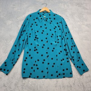 Blusa para mujer J Peterman 100 % seda talla 16 con botones a lunares LEER