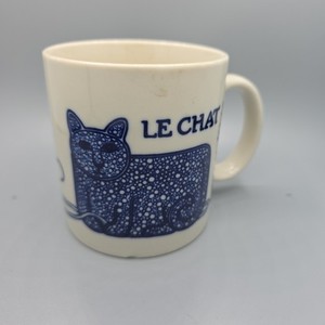 Estatuilla de gato de porcelana de colección, patrón de flor de cerezo estatua de gato blanco y azul 7" 21,34 EUR