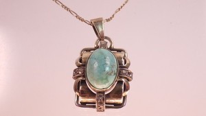 Bonito colgante Art Deco turquesa plata chapado en oro 10 piedras blancas alrededor de 1940 59,00 EUR