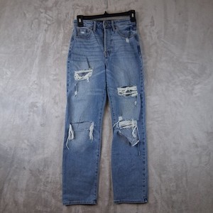 Pantalones de mezclilla HOLLISTER tiro alto súper ajustados suaves elásticos azules desgastados 0S W24 L26