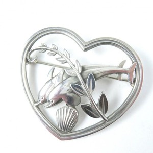 Broche Corazón Georg Jensen 312 Concha de Delfín 925 Esterlina SLV Hecho en Dinamarca Ex+