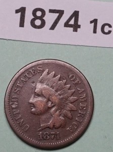 CABEZA INDIA 1874 Pequeña 1 CENTAVO EE. UU. MONEDAS DE COBRE TASAS: MUY BUENAS