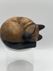 "Estatuilla de gato durmiente tallada a mano de madera de arte popular vintage 6""x5""x3,5"""