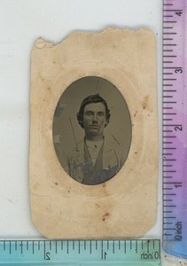 Traje de hombre joven sentado tipo ferrotipo c1870