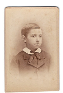Tarjeta o CDV de gabinete victoriano victoriano muy recortado niño en blanco de la década de 1890 1900