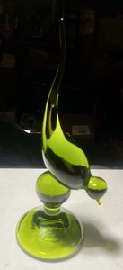 Pájaro de cola larga verde aguacate vidrio vikingo MCM vintage 9" - cola astillada
