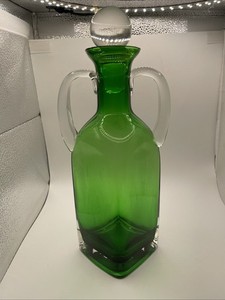 "Botella Cruet Esmeralda Vintage con Tapa Pieza Decorativa 11"" de Alto".