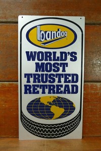 Letrero publicitario colgante vintage original BANDAG TIRES recauchutado doble cara