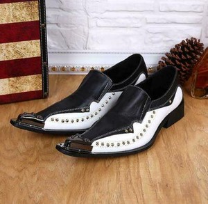 Metal Pointed Toe Men's Leather Dress Shoes Rivets Formal Splicing Britain Retro