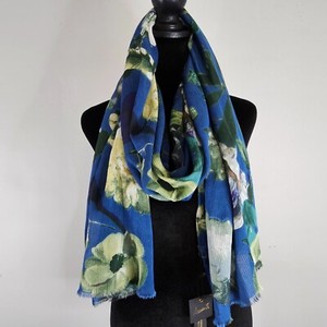 Mona B. Bufanda 100 % bambú para mujer 68 x 21 azul diseño floral ligero acanalado
