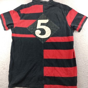 Camisa de Rugby Polo Ralph Lauren Roja Negra Rayas Cresta Bordada Para Hombre Mediana (Etiqueta