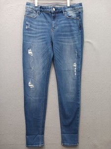 Pantalones de mezclilla ajustados para mujer 30 azul mediano desgastado tiro medio algodón