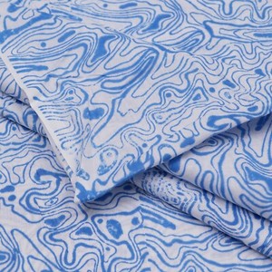 Tela floral india de algodón puro azul estampado a mano por yarda