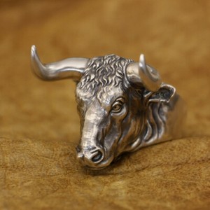 LINSION 925 Anillo de Búfalo de Plata Esterlina Motociclista Punk Anillo de Buey Salvaje TA394A EE. UU. 7 ~ 16