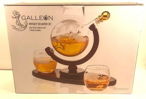 JUEGO DE JARRA DE WHISKY GALEÓN VIDRIO BARCO ESCULTURA 2 VASOS GLOBO
