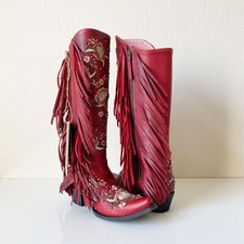 Botas de vaquero Lane LEXINGTON por encima de la rodilla para mujer 5,5 rojas vaqueras occidentales con cordones