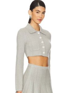 Cárdigan Recortado REVOLVE Majorelle Solveig Talla XS Gris Jaspeado, NUEVO Minorista $188