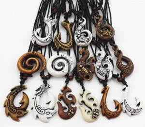 Collar colgante gancho pez maorí tallado hueso imitación joyería mixta 15 piezas