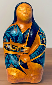 Escultura de arte indígena azteca mujer niña cerámica mexicana X grande