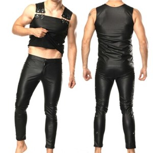 Mens T shirt Faux Leather Lingerie Tights Pants Nightclub Costume Tank Top Vest 14,90 EUR a 25,78 EUR